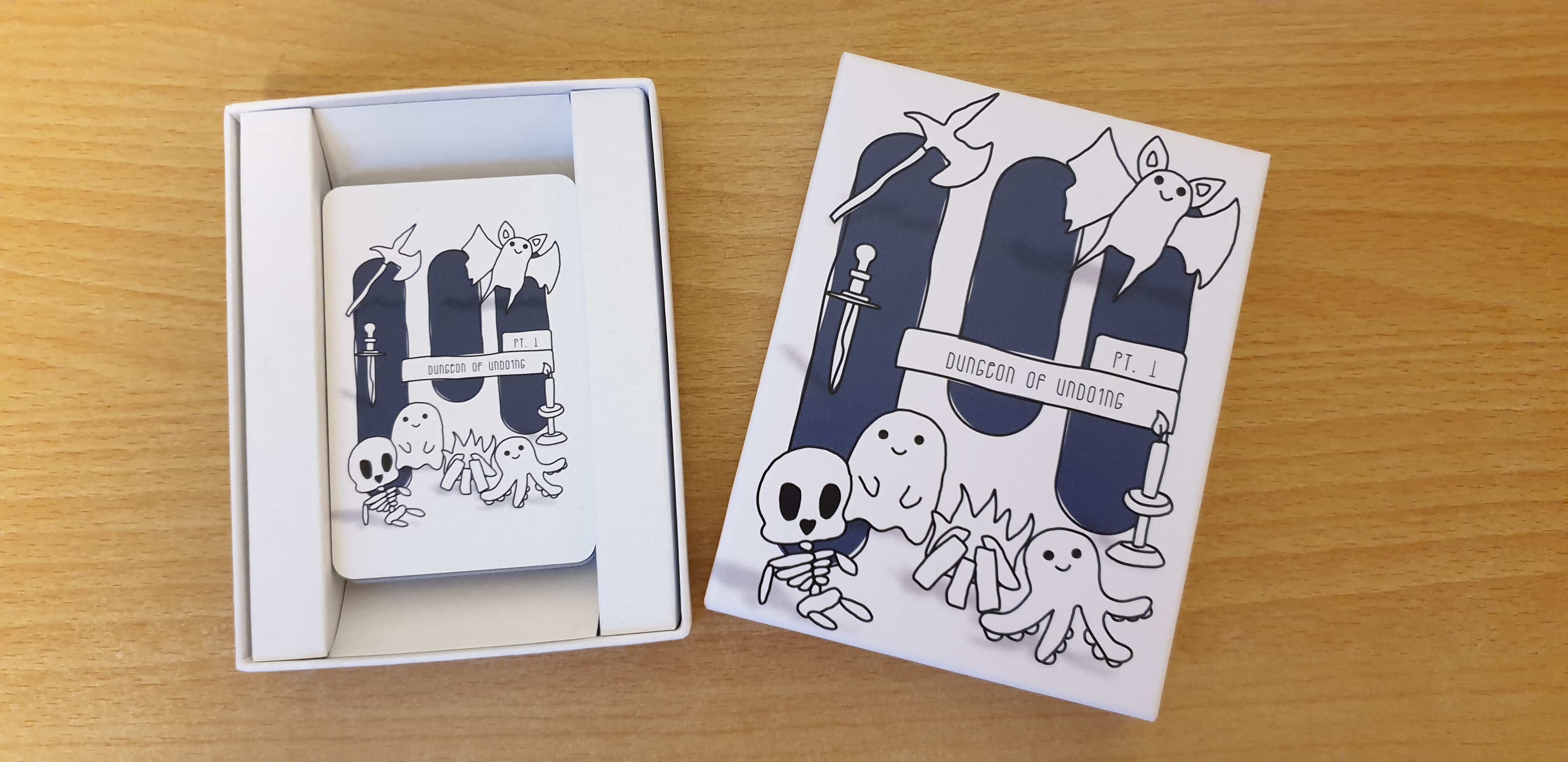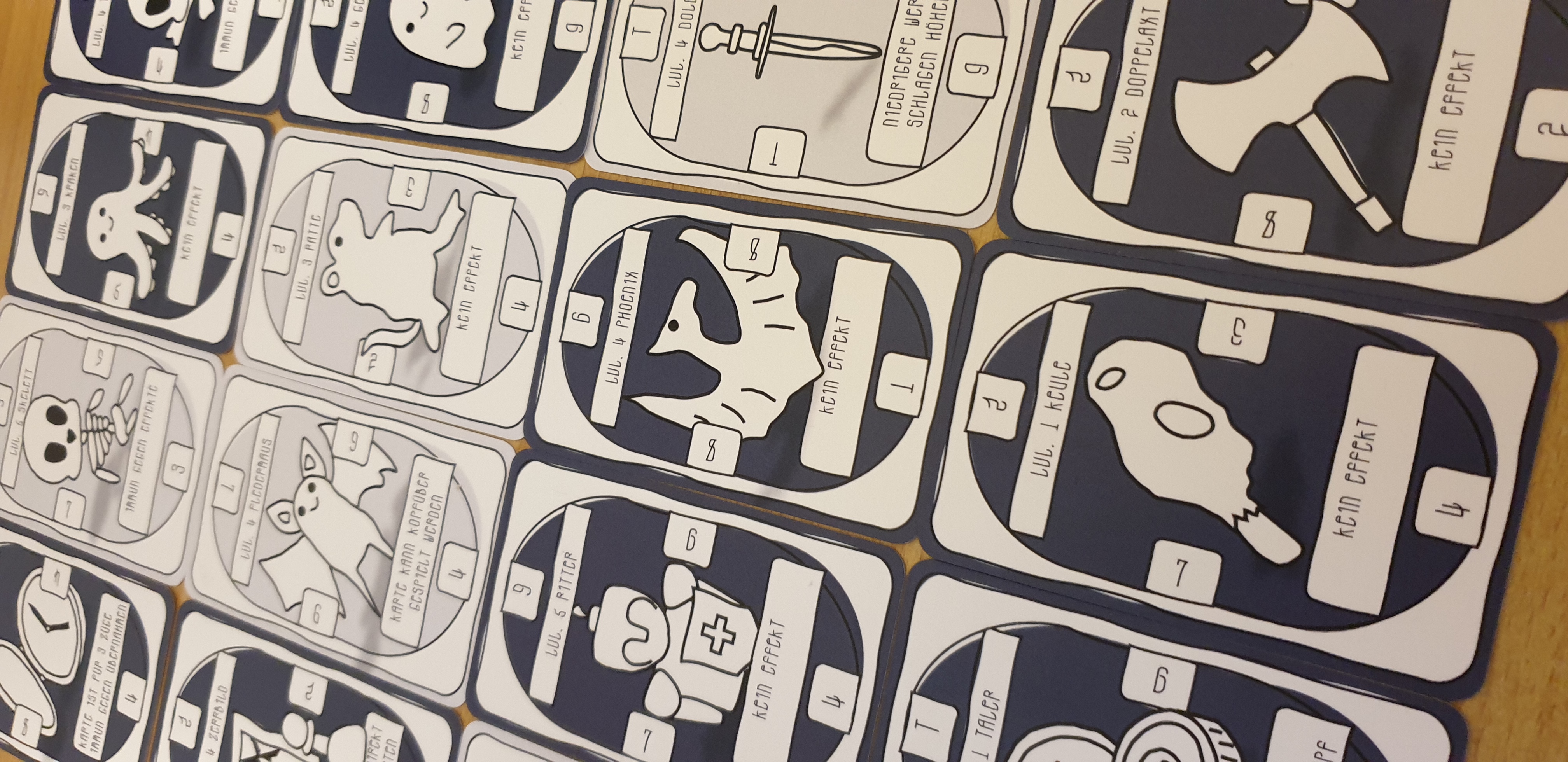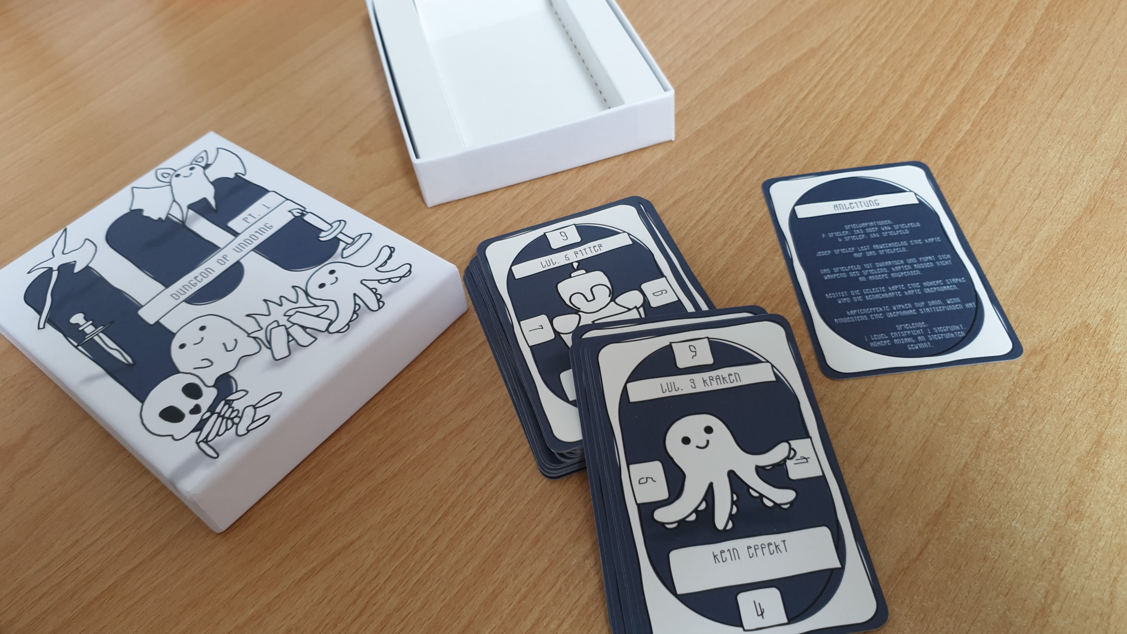 I have produced my own card game! I took care of everything from game design to card design to production of the card game. I came up with my own cards and my own rules and tried to create a balanced strategic card game for 2 or 4 players.